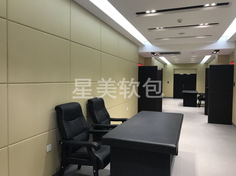 新疆和田法院防撞軟包墻面安全防撞材料,是采用了新型進口的歐文斯科寧棉與皮革人工制造膠水復(fù)合產(chǎn)品,由星美廠家的工人純手工打造而成,產(chǎn)品規(guī)格為600*1200等多樣,軟包厚度達到25mm/50mm/100mm等,被廣泛使用在派出所,羈押室,談話室,監(jiān)獄,看守所等辦案場所。之所以能夠廣泛應(yīng)用在辦案區(qū)場所,主要是因為防火防撞軟包具有防撞性強,吸音性好,高阻燃,環(huán)保等特點。
